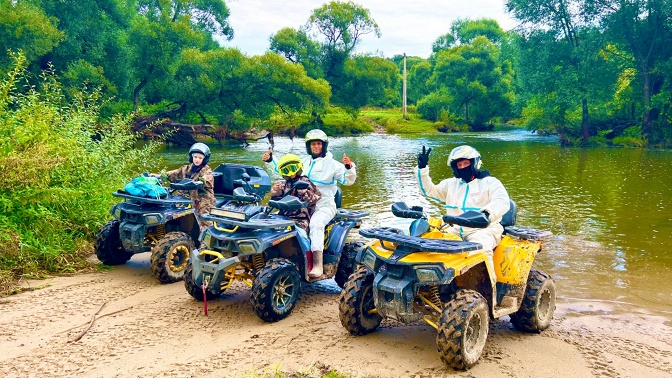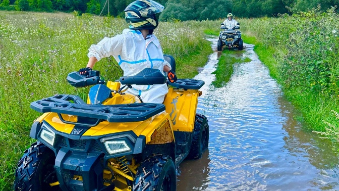 Также есть прокат мотоциклов эндуро. Авторские туры на квадроциклах не оставят никого равнодушным (есть возможность доехать до водопада, покататься по горкам и лесу). Для детей предусмотрена отдельная трасса, также есть батут.